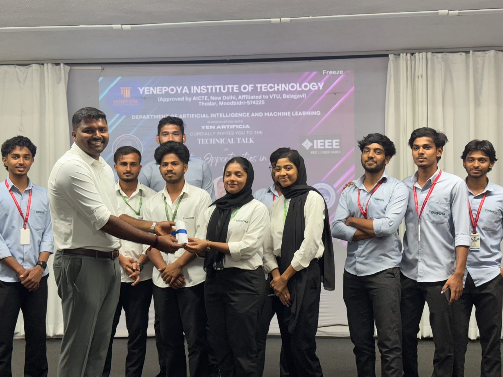 The Department of Artificial Intelligence and Machine Learning inaugurated its student association YenArtificia on 20th September 2025 for the AY: 2025-2026 at Yenepoya Institute of Technology, Moodbidri. The Chief Guest, Ms. Aishwarya Rajeev (Senior Analyst – Learning, Infosys Ltd.), delivered an insightful talk on “Next Gen-AI”, highli